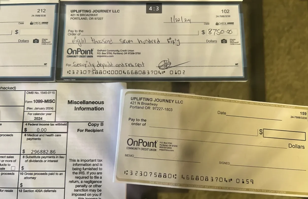 The Tippitt Place address that Fagerlie and Sanders briefly called home is related to another Maximo-affiliated business, Refreshing Run LLC, according to Secretary of State records. One of the owners of Refreshing Run, Anisha Bukenya, was included in an Oregon Health Plan enrollment form provided by yet another Maximo business, Life Restoration Missions, LLC doing business as Restorative Journey. Restorative Journey received $159 in Oregon Health Plan reimbursements in January 2025, according to Oregon Health Authority records. Sums paid by Oregon Health Authority directly to Uplifting Journey and Life Restoration Missions likely represent a fraction of the total Medicaid payments to the entities; much of Medicaid spending in Oregon is via nonprofit Community Care Organizations, which are exempt from public records requests laws.