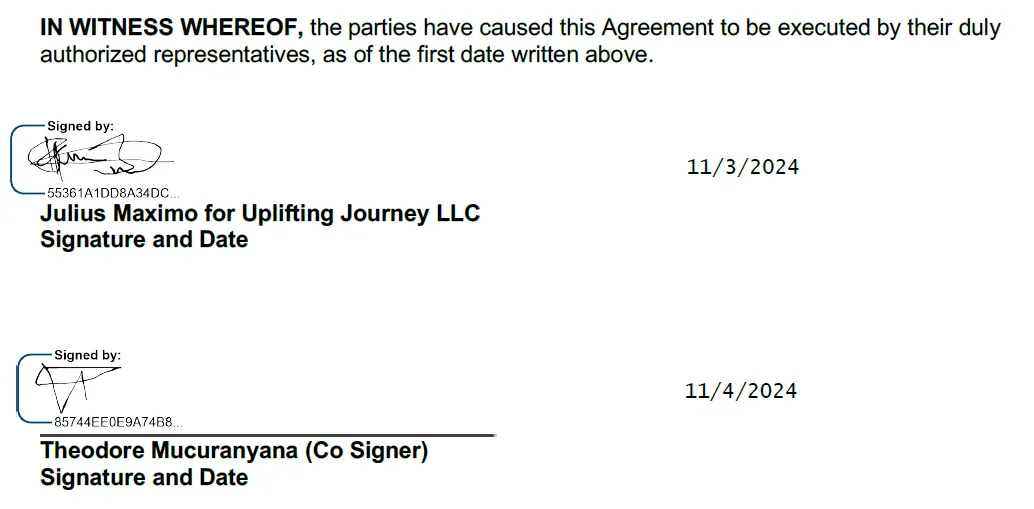 Versa Force’s “loophole” of urging Oregonians to apply for Washington Medicaid benefits echoes Uplifting Journey’s business relationship with an indicted Medicaid fraud money launderer. Sister company Uplifting Journey entered into a lease for residential real property in Gresham, Oregon, in November 2024, presumably to establish another house for people receiving Medicaid-funded counseling. The lease is signed by Maximo on behalf of Uplifting Journey, and co-signed by a Theodore Mucuranyana