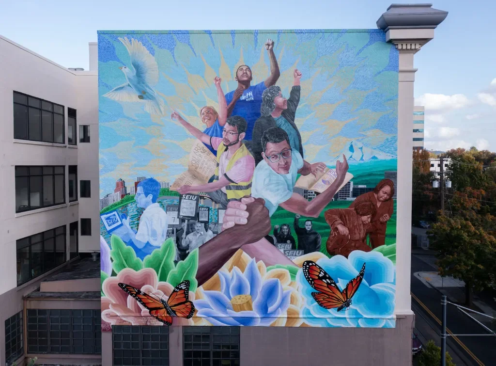 A new mural on the SEIU 503 headquarter building in NE Portland. (Photo courtesy SEIU 503)